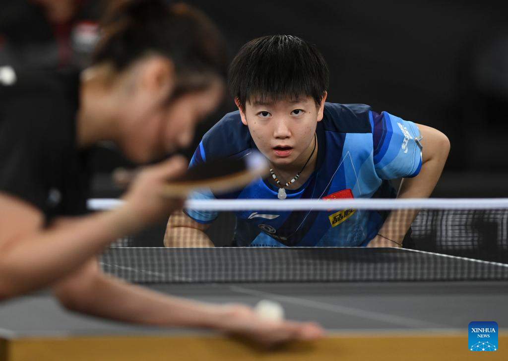 Sun Yingsha of China competes during the women's singles round of 32 match against Wong Xin Ru of Singapore at World Table Tennis Championships (WTTC) Asian Continental Stage in Doha, Qatar, Jan. 10, 2023. (Photo by Nikku/Xinhua)