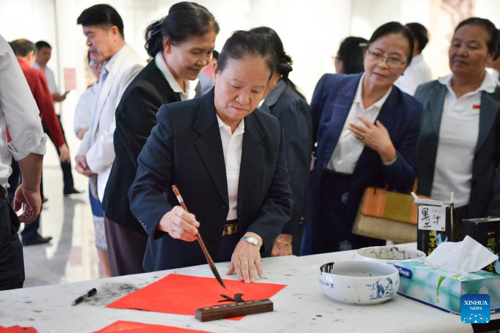 Alumni from "67" School participate in the 2023 "Happy Chinese New Year" Festival at the China Cultural Center in Vientiane, Laos, Jan. 10, 2023. (Photo by Tamon Huengmeexay/Xinhua)