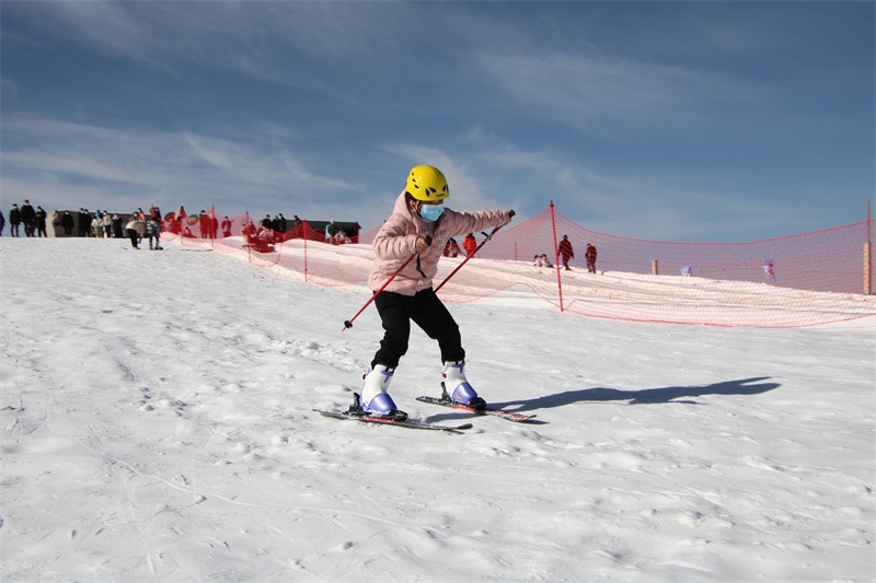 A visitor skis in Golmud, northwest China's Qinghai Province. (Photo/Bureau of Culture, Sports, Radio, Film, Television and Tourism of Golmud)