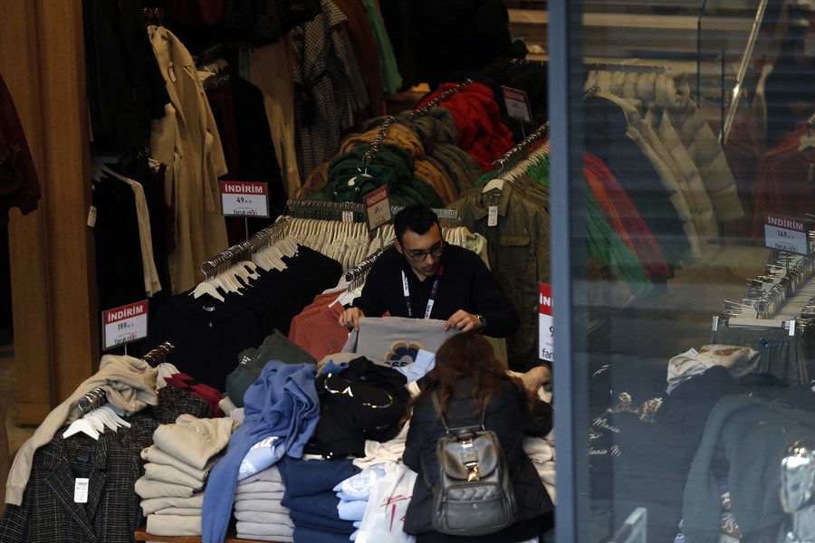 Customers shop at a market in Ankara, Türkiye, on Jan. 11, 2023. (Photo by Mustafa Kaya/Xinhua)