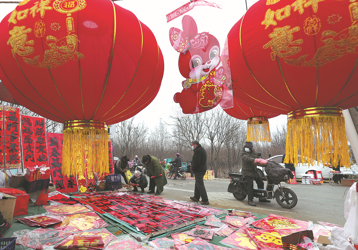 Customers shop for Spring Festival decorations at a market in Taian, Shandong province, on Thursday. China's consumer price index, a main gauge of inflation, rose by 2 percent year-on-year in 2022, according to data released by the National Bureau of Statistics. ZOU HONG/CHINA DAILY