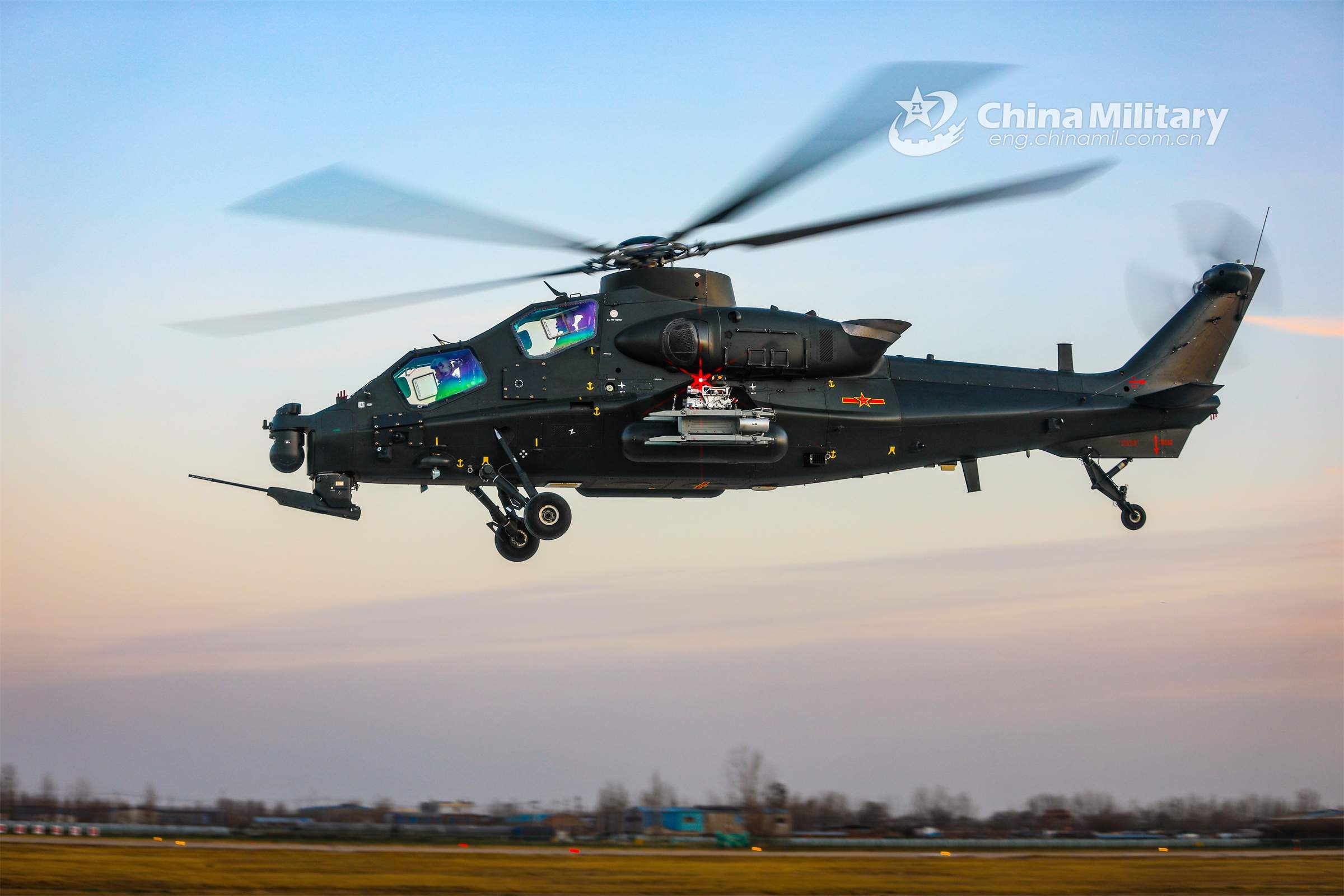A helicopter attached to an army aviation brigade under the PLA 80th Group Army conducts ultra-low-altitude defense penetration operation in a round-the-clock flight training exercise in mid-December, 2022. (eng.chinamil.com.cn/Photo by Liu Yuchen)