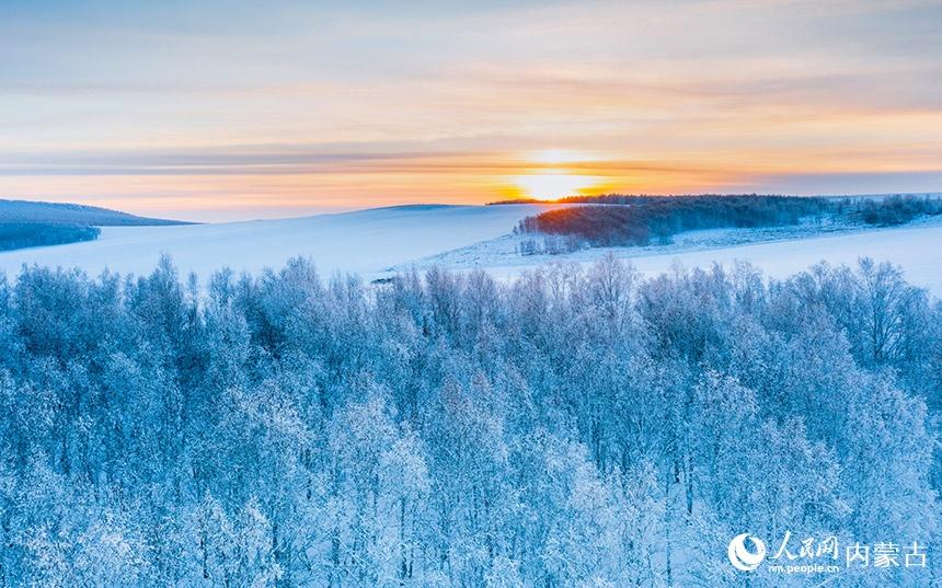 Under the sunset glow, the snow-covered land looks like a majestic Chinese freehand landscape painting in Greater Hinggan Mountains in north China’s Inner Mongolia Autonomous Region. (People's Daily Online/Li Ming)