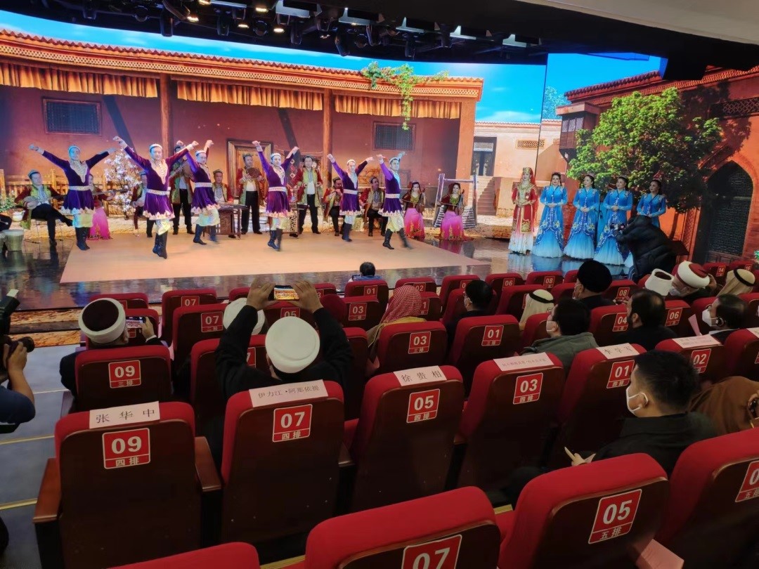 A delegation of world-renowned Islamic figures and scholars enjoy performances of the Twelve Muqams, a traditional art form known as the "Mother of Uygur Music". (Photo/Xinjiang Daily)