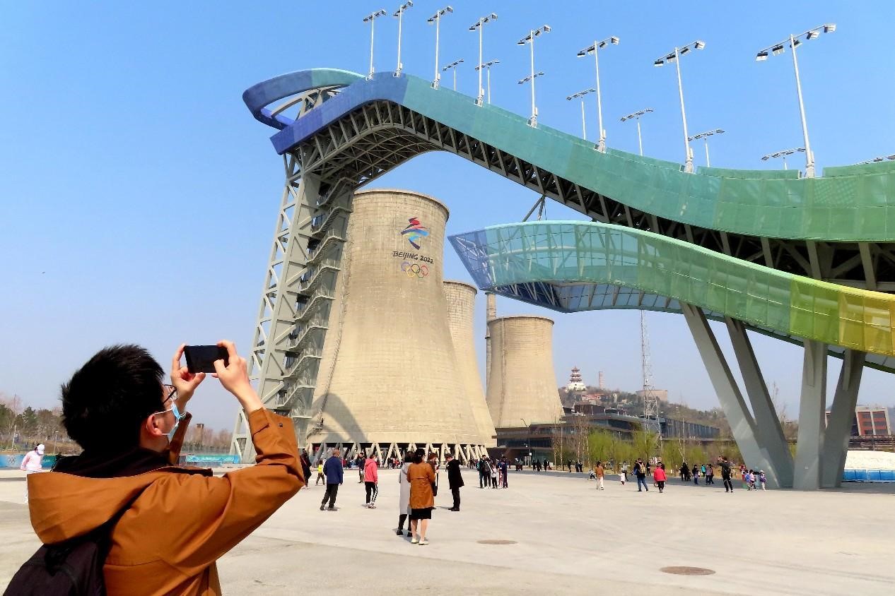"When I was watching a live broadcast of the Games, I could see the cooling towers with Beijing 2022 Olympic Winter Games emblem behind the athletes, as well as the Xishan Mountains in the background. What a magnificent view," said a citizen surnamed Liu, who was trying to take a selfie with her husband in front of the Big Air Shougang, a Beijing 2022 venue.