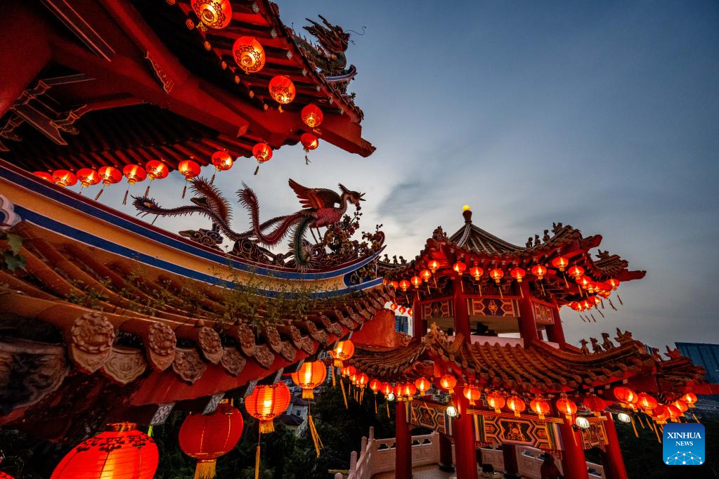Red lanterns set for the upcoming Chinese Lunar New Year are seen at Thean Hou Temple in Kuala Lumpur, Malaysia, Jan. 13, 2023. (Xinhua/Zhu Wei)