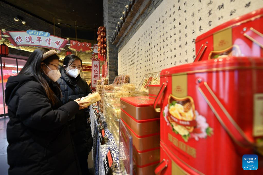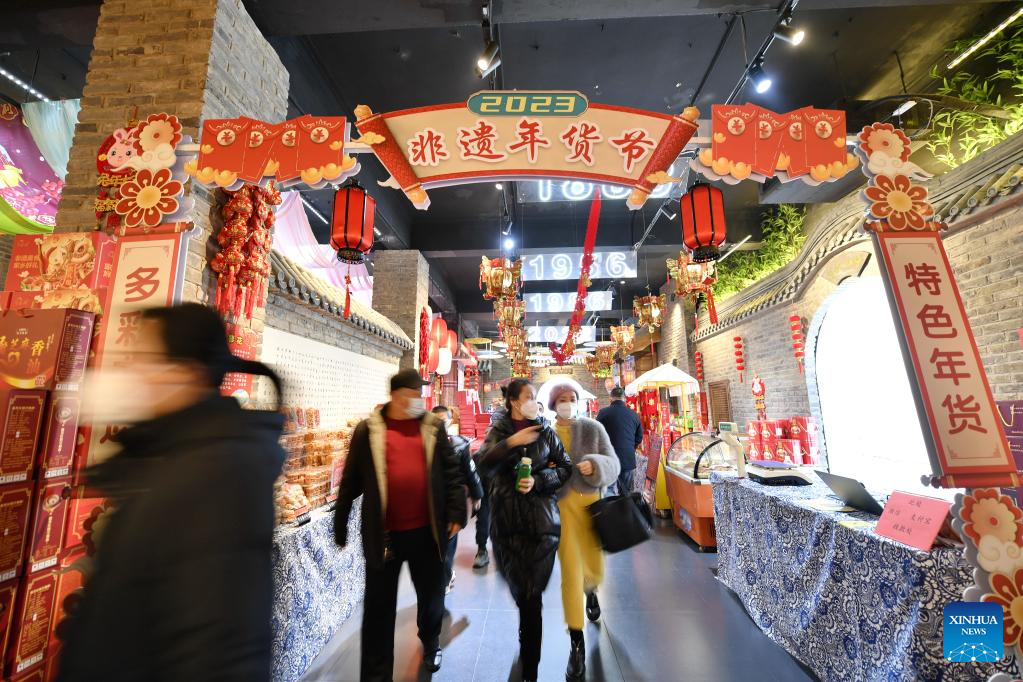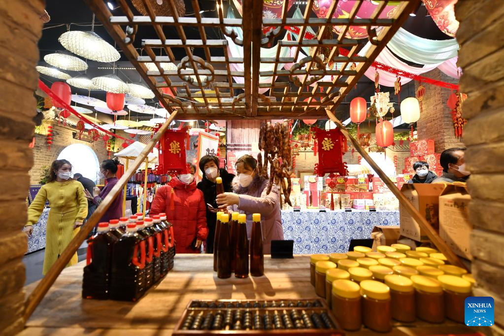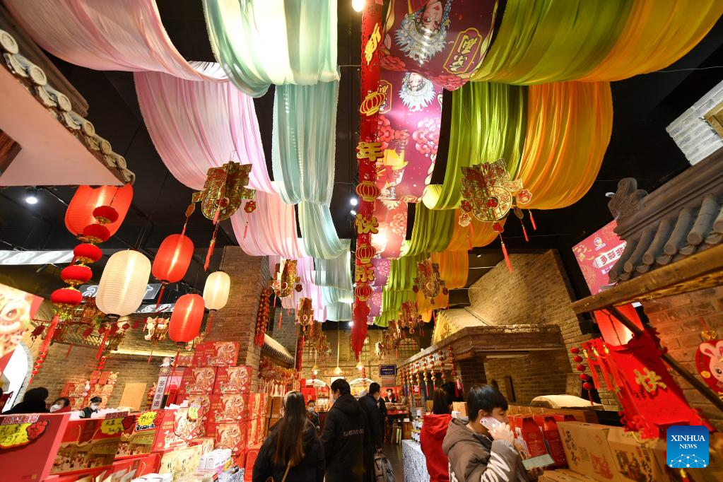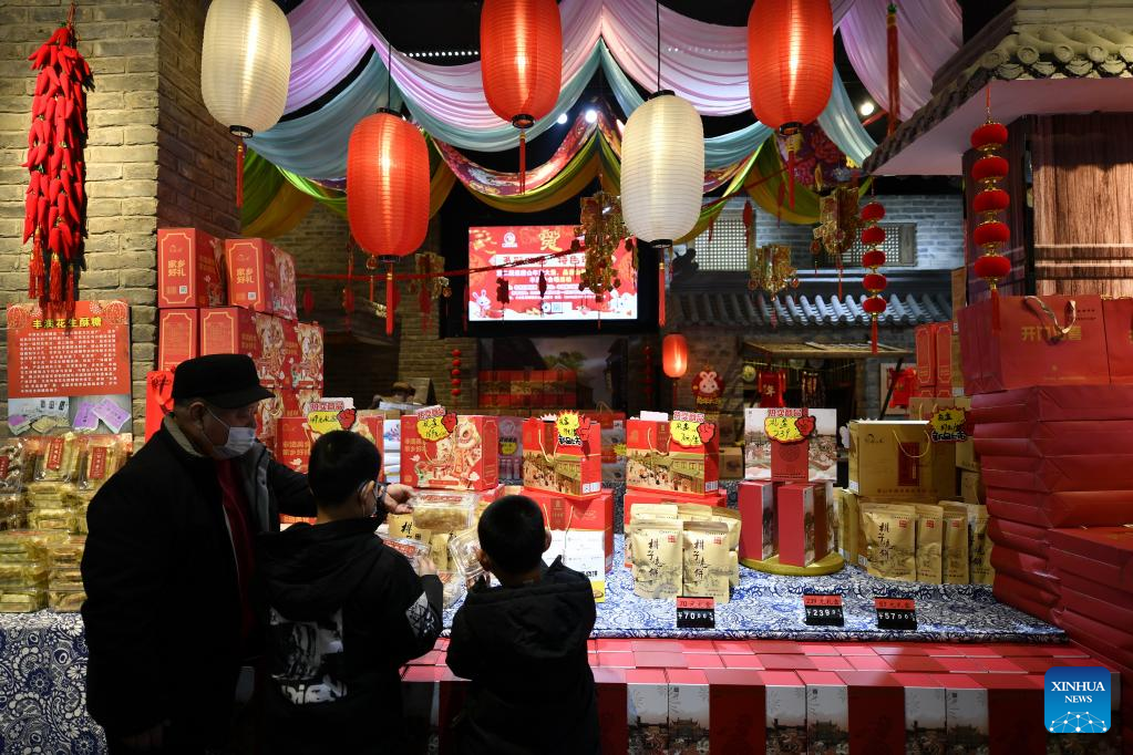 Customers shop at a Spring Festival fair in Fengrun District of Tangshan, north China's Hebei Province, Jan. 12, 2023.