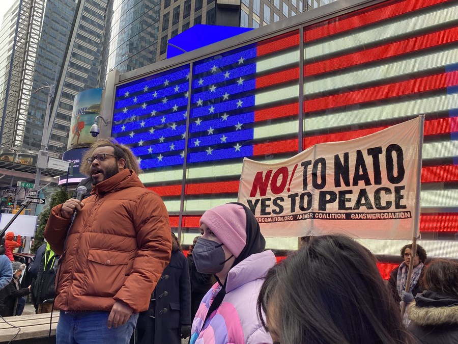 "We're here today because we oppose the endless expansion of NATO, which is not only unnecessary but reckless and proactive," said Brian Becker, national director of the ANSWER Coalition, a major anti-war coalition in the United States.