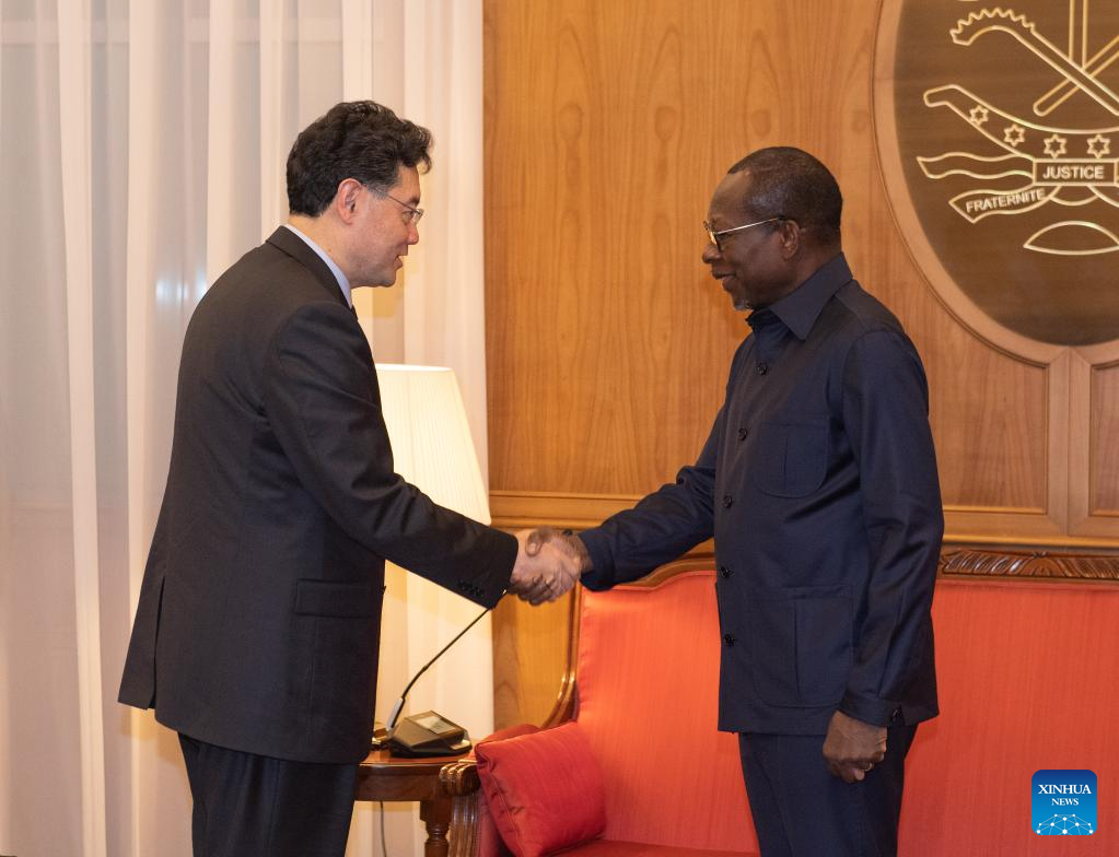 Talon asked Qin to convey his sincere greetings and best wishes to Chinese President Xi Jinping, saying the visit of the new Chinese foreign minister to Benin during his first official African tour, which came shortly after the 50th anniversary of the resumption of diplomatic relations between China and Benin, has demonstrated the friendly and close ties between the two countries.