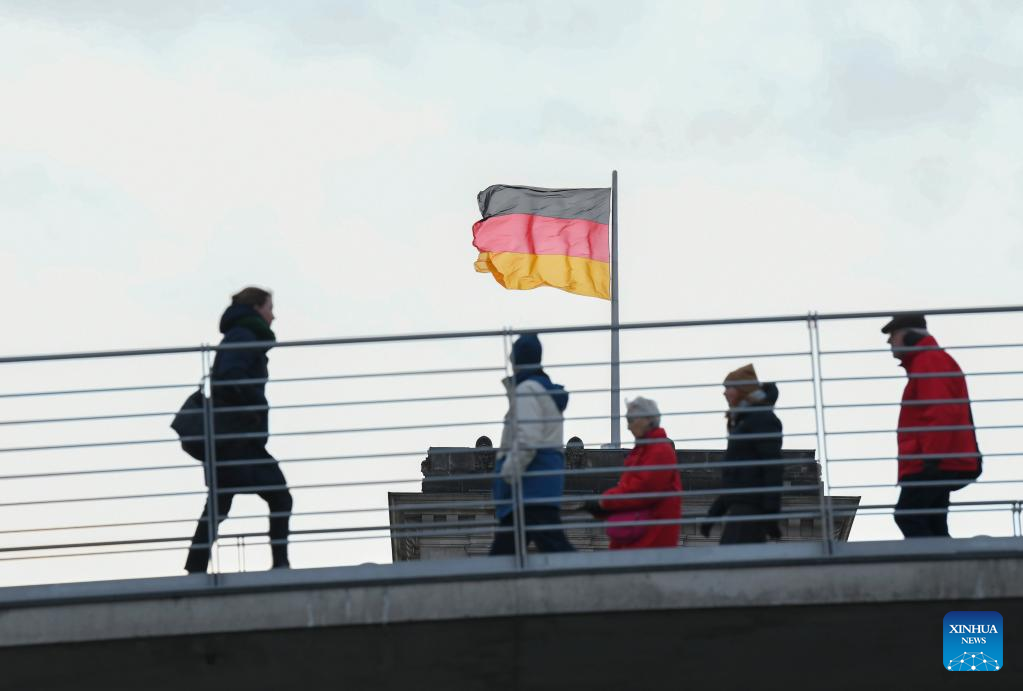 People walk on a bridge in Berlin, Germany, Jan. 13, 2023. Germany's price-adjusted gross domestic product (GDP) in 2022 was 1.9 percent higher than in the previous year, according to preliminary figures published by the Federal Statistical Office (Destatis) on Friday. (Xinhua/Ren Pengfei)