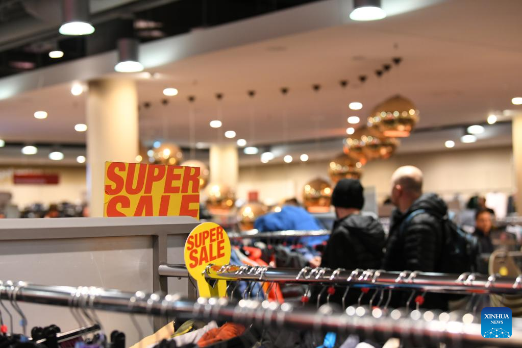 Customers shop at a store in Berlin, Germany, Jan. 13, 2023. Germany's price-adjusted gross domestic product (GDP) in 2022 was 1.9 percent higher than in the previous year, according to preliminary figures published by the Federal Statistical Office (Destatis) on Friday. (Xinhua/Ren Pengfei)