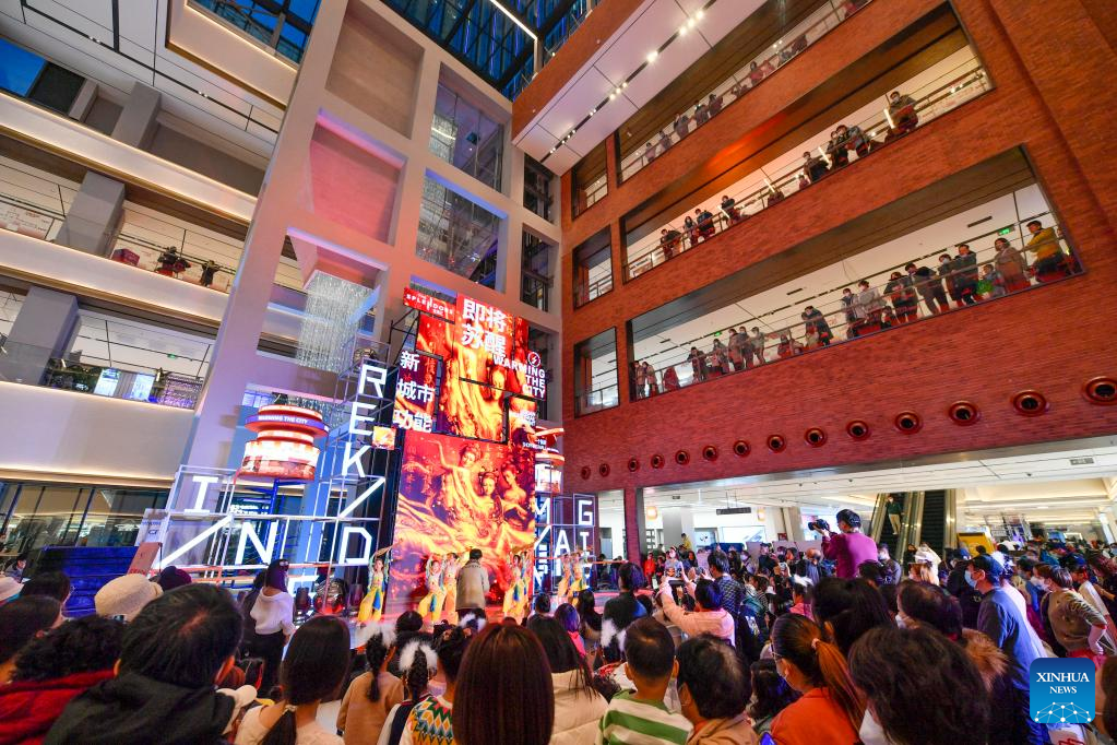 People watch a performance at a large commercial complex transformed from an old thermal power plant in north China's Tianjin, Jan. 1, 2023. People's social and economic activities gradually return to normal after China's optimization of its COVID-19 response measures. (Xinhua/Sun Fanyue)