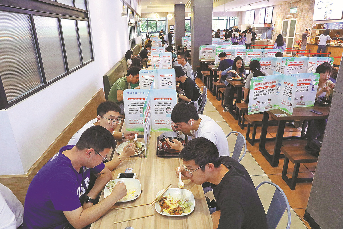 Students at the Southwest University of Political Science& Law dine in one of the college's canteens on May 22, 2021. ZHU XINGXIN/CHINA DAILY