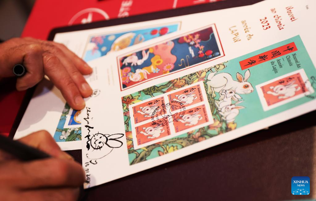 PARIS, Jan. 14 (Xinhua) -- French post office, La Poste, on Saturday issued two stamps to celebrate the upcoming Chinese New Year, the Year of the Rabbit, which starts on Jan. 22.