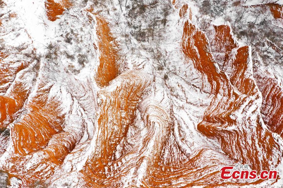 Snowfall adds color to Danxia landform in Henan (4)
