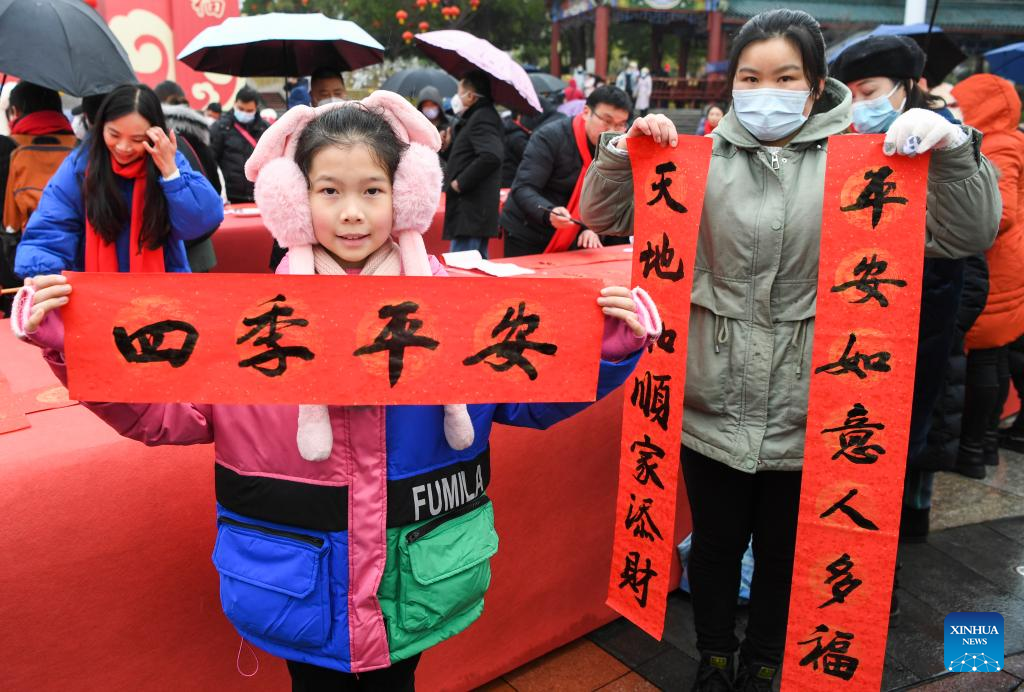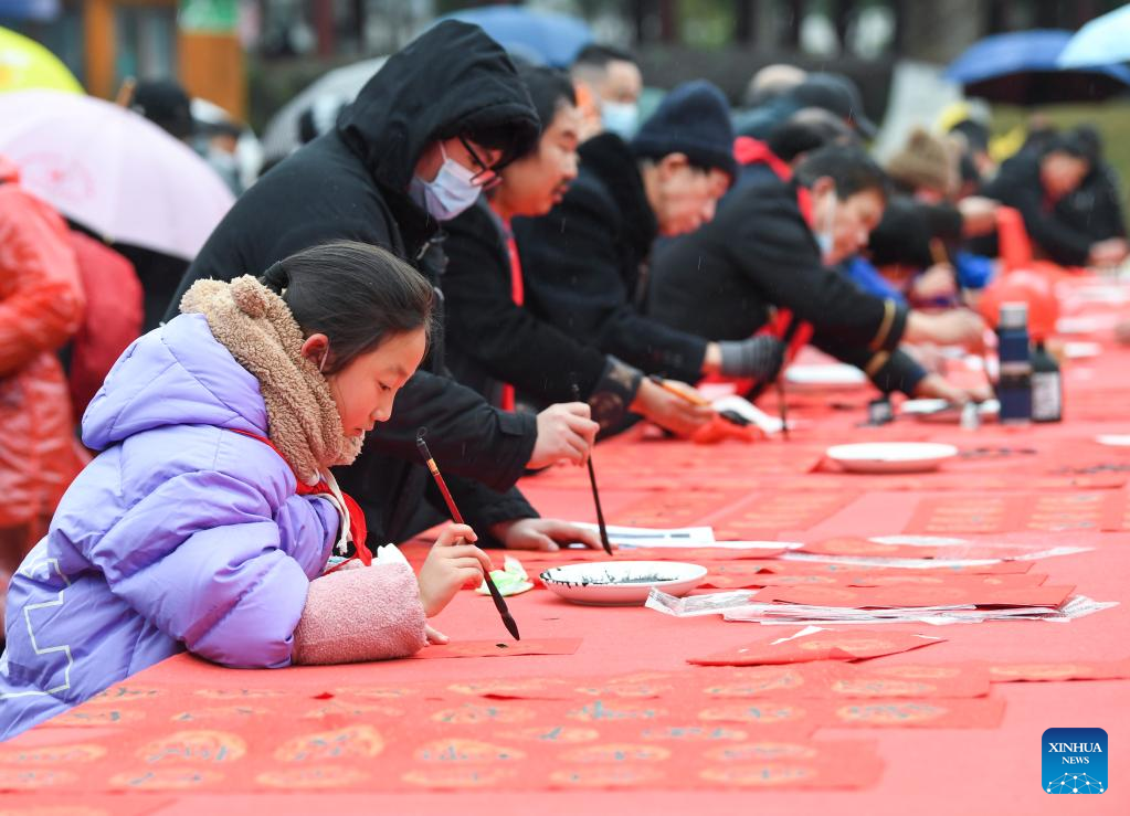 People attend a Spring Festival couplets writing activity in Yongchuan District, southwest China's Chongqing, Jan. 16, 2023. (Xinhua/Wang Quanchao)