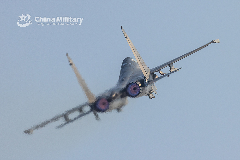 A fighter jet attached to an aviation brigade of the air force under the PLA Northern Theater Command soars to a designated airspace during a combat flight training exercise on January 3, 2023. (eng.chinamil.com.cn/Photo by Yang Pan)