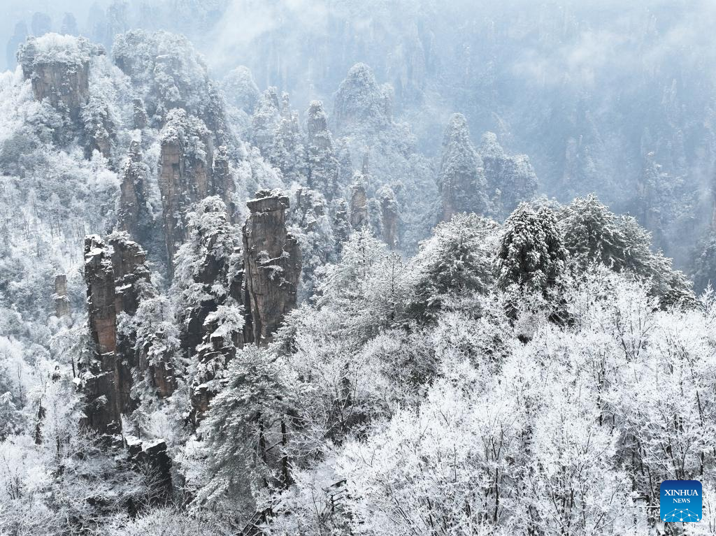 In pics: snow-covered Tianzi Mountain in Zhangjiajie, C China's Hunan (4)