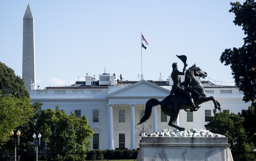 This photo shows the White House in Washington, D.C., the United States on Aug. 16, 2022, the day when U.S. President Joe Biden signed into law the Inflation Reduction Act. (Xinhua/Liu Jie)