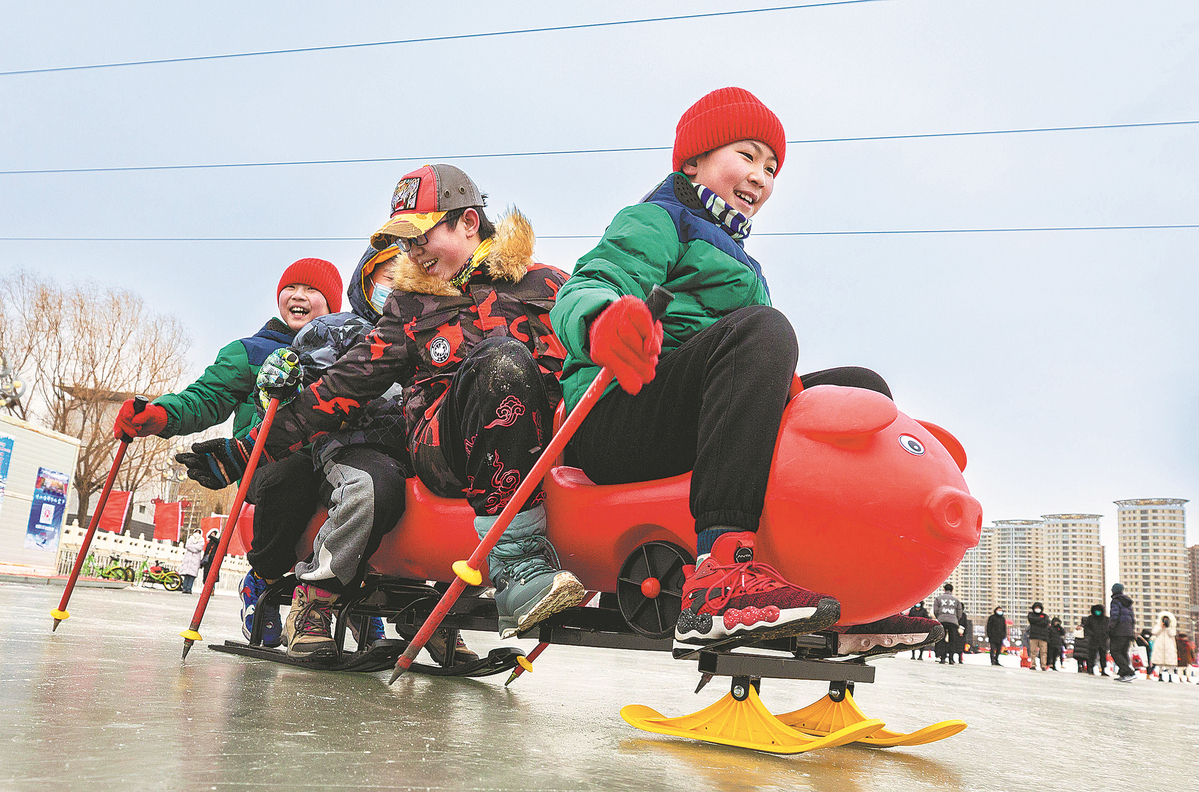 Residents take to the ice in Hohhot, Inner Mongolia autonomous region. DING GENHOU/FOR CHINA DAILY
