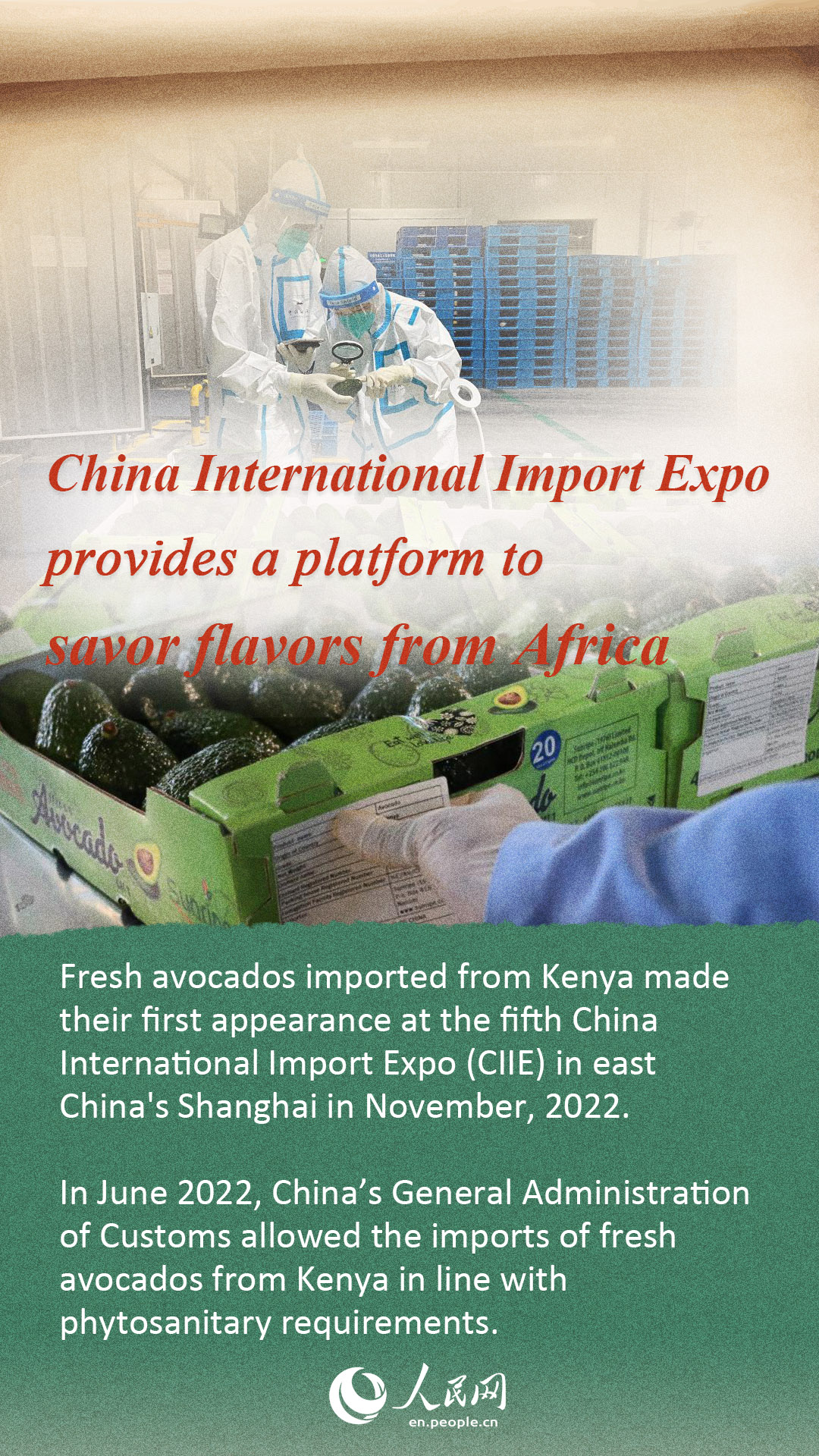 Fresh avocados imported from Kenya made their first appearance at the fifth China International Import Expo (CIIE) in east China's Shanghai in November, 2022.