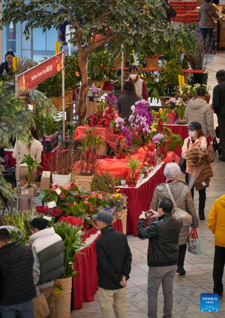 People shop for plants at the Chinese Lunar New Year Flower and Gift Fair in Richmond, British Columbia, Canada, on Jan. 17, 2023. (Photo by Liang Sen/Xinhua)