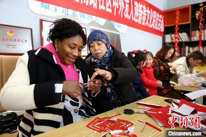 Michelle from the Philippines learned to make a rabbit-themed sachet pendant from Zhao, while Enny from Cameroon created a paper cutting work themed on the Spring Festival under Ma’s guidance.