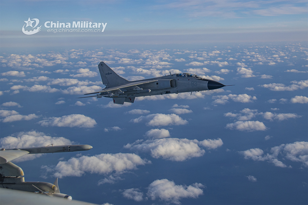 Fighter jets attached to a naval aviation brigade under the PLA Northern Theater Command fly in formation during a combat-readiness patrol mission in early-January, 2023. (eng.chinamil.com.cn/Photo by Liu Xuhong)