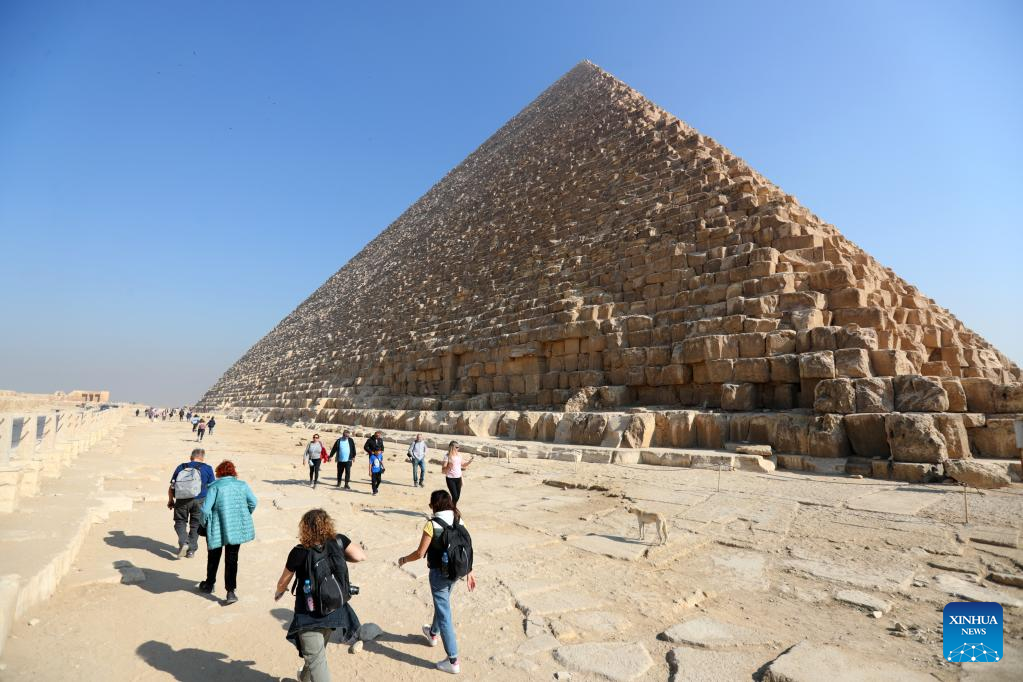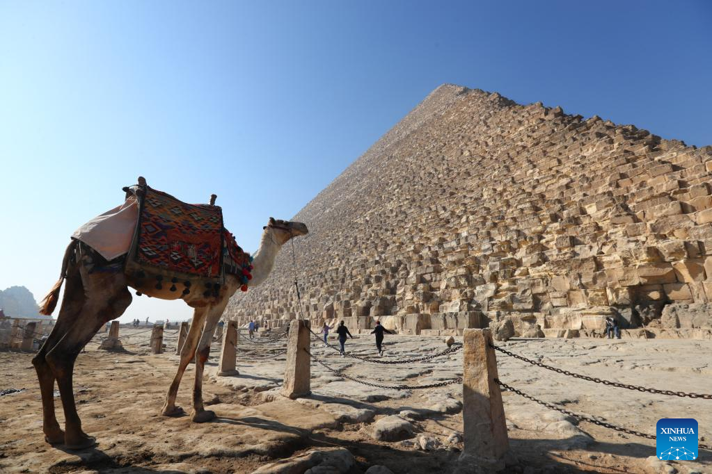 Tourists visit the Giza Pyramids scenic spot in Giza, Egypt, Jan. 18, 2023. Egypt warmly welcomes the Chinese people to visit as soon as possible, Egyptian President Abdel-Fattah al-Sisi has said in the country's capital Cairo. (Xinhua/Sui Xiankai)