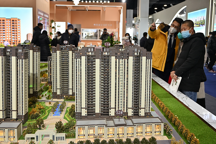 Potential homebuyers assess a property model in Hohhot, Inner Mongolia autonomous region. [Photo by LIU WENHUA/CHINA NEWS SERVICE]