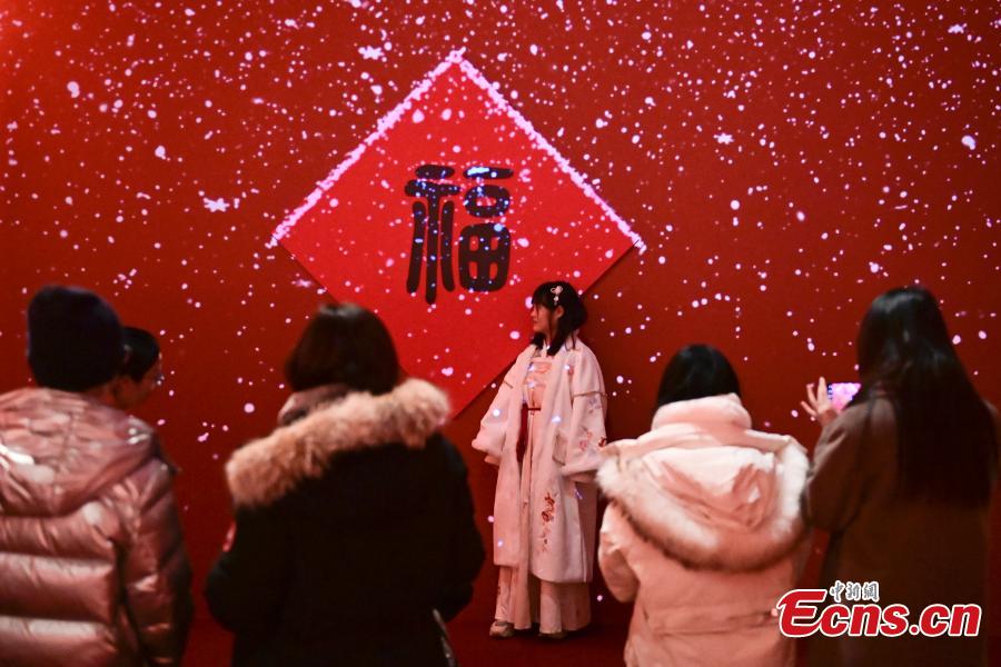 A visitor poses for photos at the National Museum of China in Beijing, Jan. 18, 2023. (Photo: China News Service/Tian Yuhao)