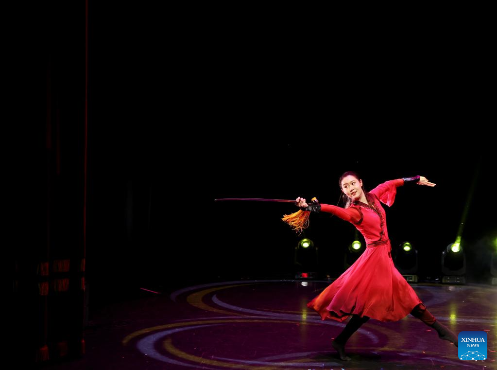 An actress performs during a gala of the Chinese Students and Scholars Association UK (CSSAUK) celebrating the Chinese Lunar New Year in London, Britain, Jan. 17, 2023. (Xinhua/Li Ying)