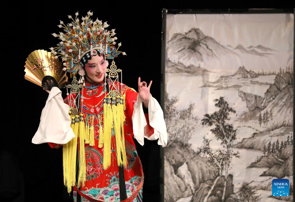 An artist performs Peking Opera during a gala of the Chinese Students and Scholars Association UK (CSSAUK) celebrating the Chinese Lunar New Year in London, Britain, Jan. 17, 2023. (Xinhua/Li Ying)