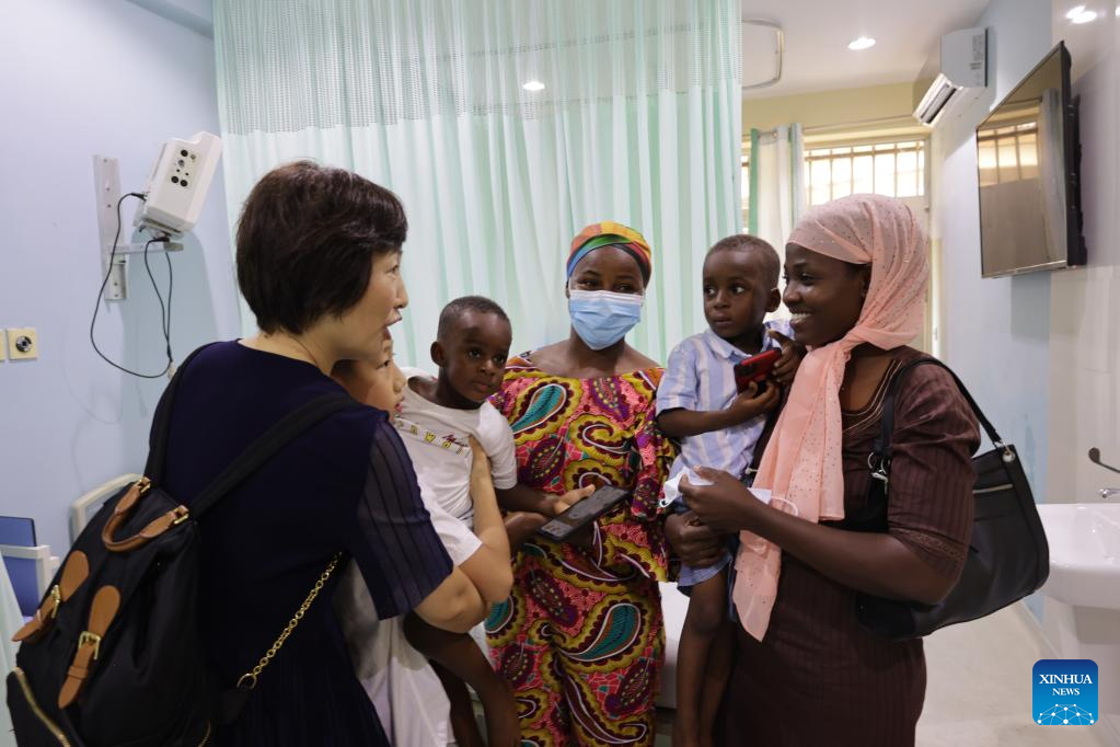 Representatives from China's Sunda International Group visit beneficiaries at the Korle-Bu Teaching Hospital in Accra, Ghana, on Jan. 19, 2023. Sunda International Group on Thursday set up a foundation that intends to save at least 25 Ghanaian children with heart diseases every year. (Xinhua/Xu Zheng)