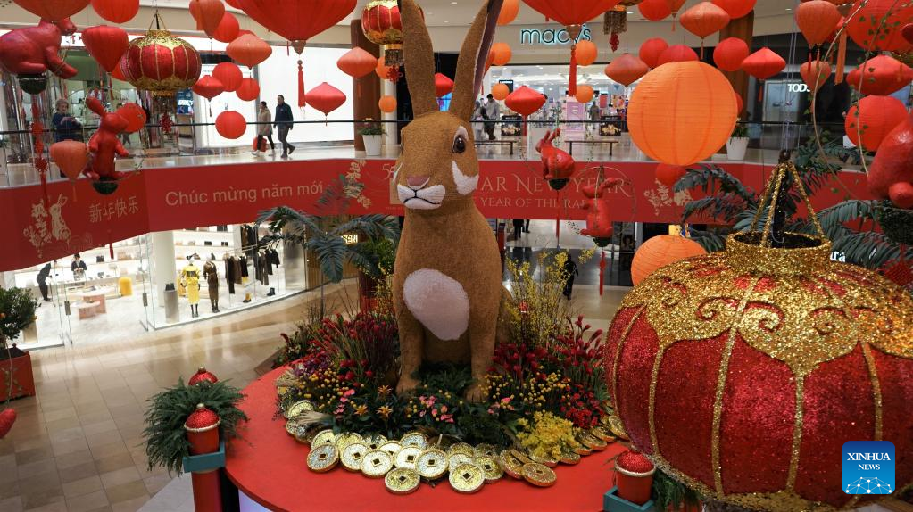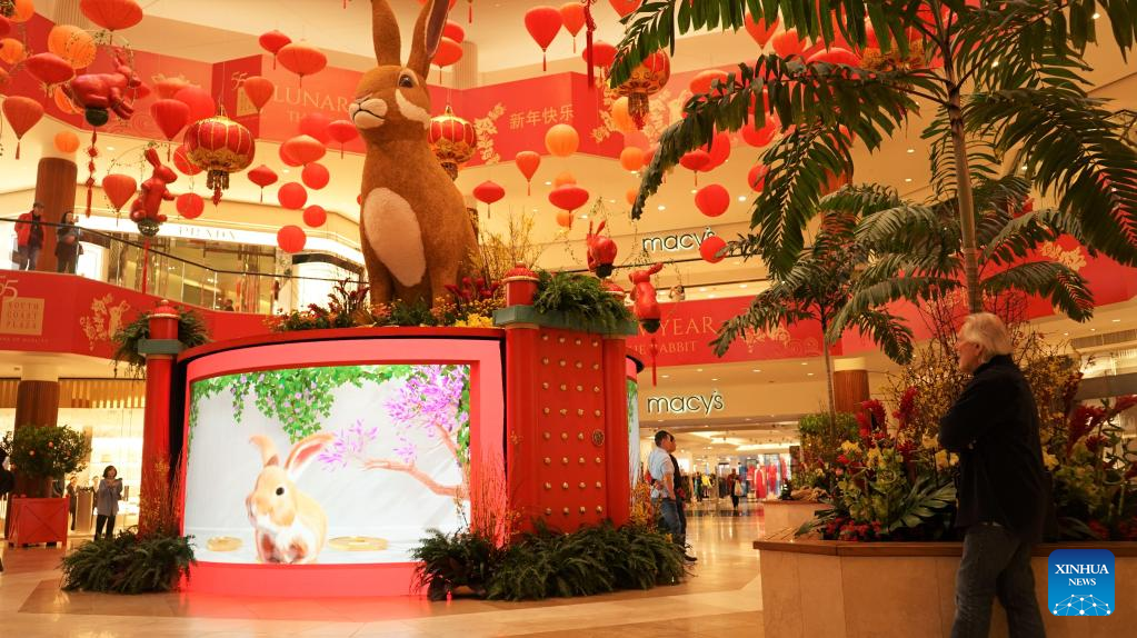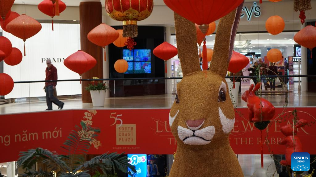 LOS ANGELES, Jan. 20 (Xinhua) -- A 15-feet-tall rabbit showered by hundreds of lucky lanterns and whimsical hanging orbs sits on top of a garden full of gold coins and ingots at the center of South Coast Plaza, signifying the arrival of the Chinese Lunar New Year, good luck and prosperity.