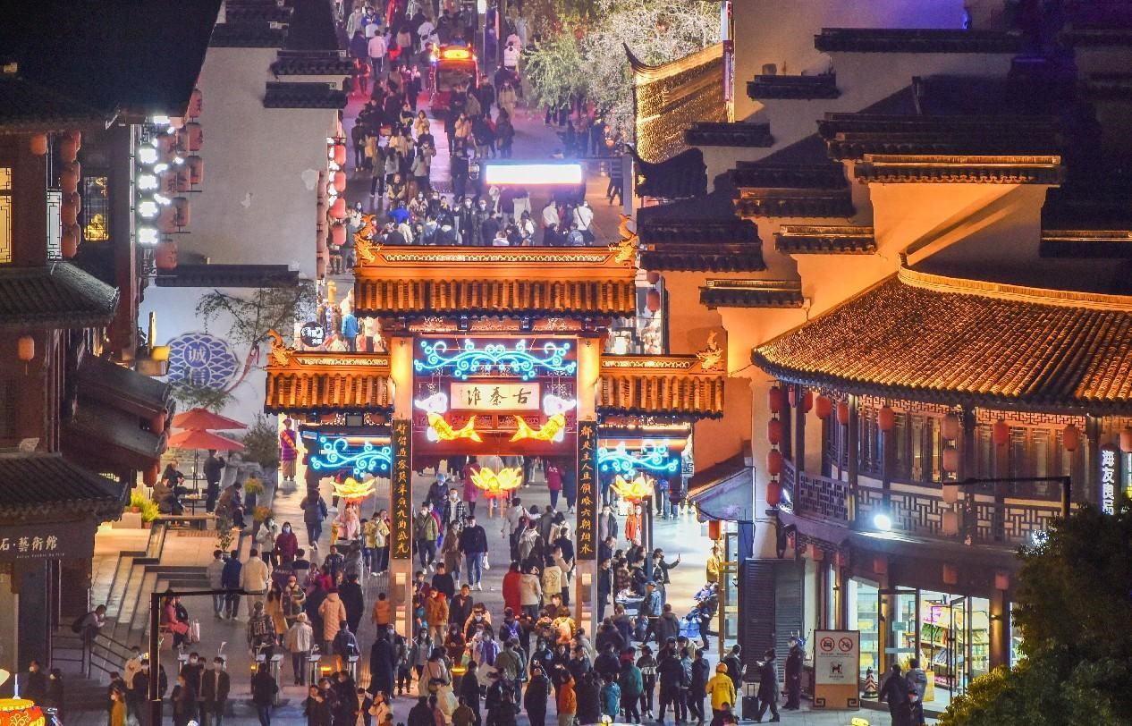 People take a night tour at the Confucius Temple Resort in Nanjing, east China's Jiangsu province, Jan. 8, 2023. (People's Daily Online/Fang Dongxu)
