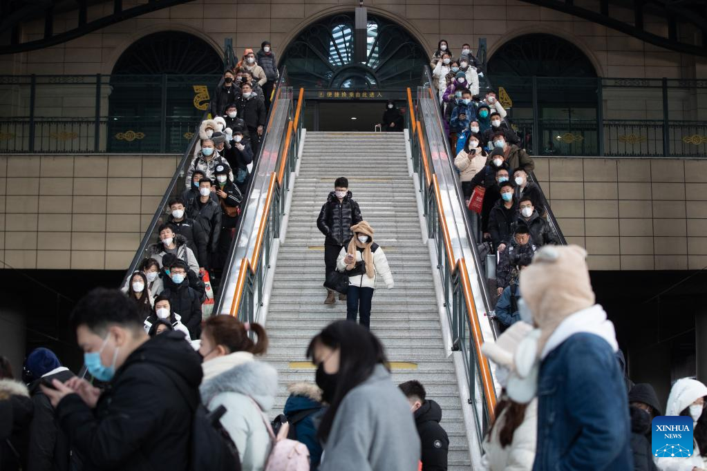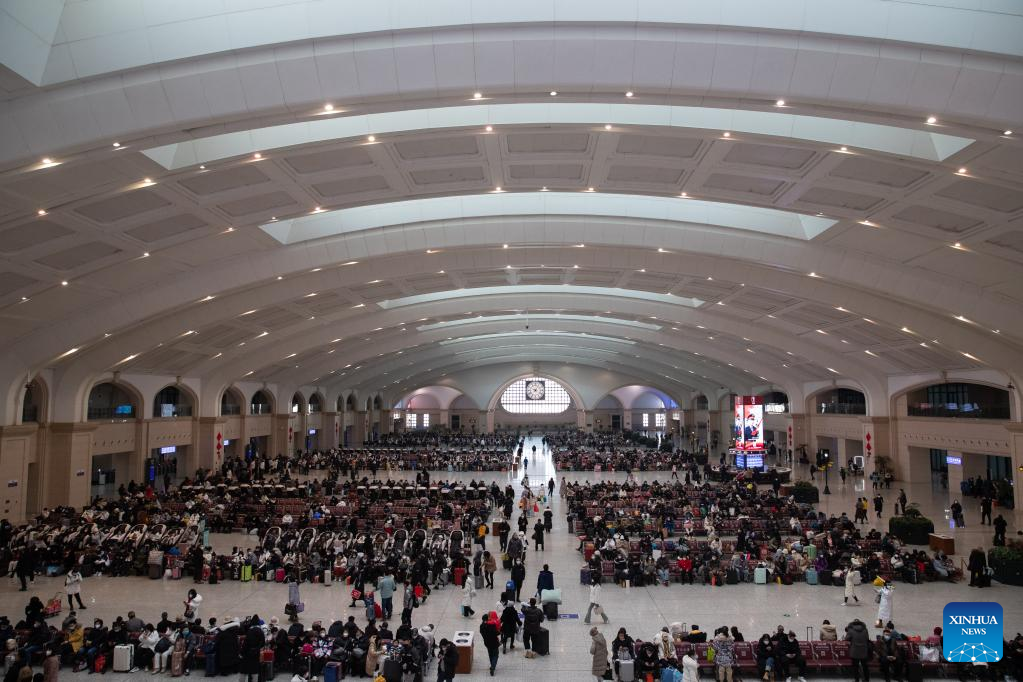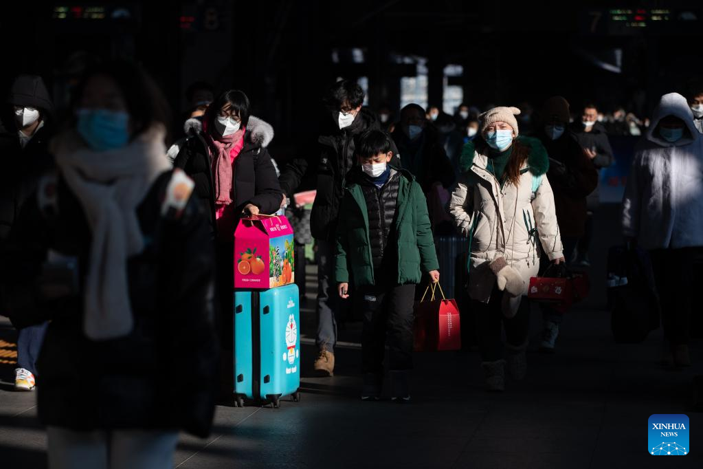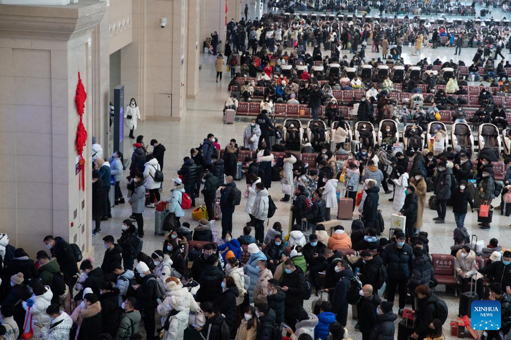 Passengers are seen inside the Harbin Railway Station in Harbin, northeast China's Heilongjiang Province, Jan. 20, 2023. Up to Jan. 18, a total of 1.612 million passenger trips have been made by the China Railway Harbin Bureau Group Co., Ltd. during this year's Spring Festival travel rush, up 68.8 percent year on year. (Xinhua/Zhang Tao)