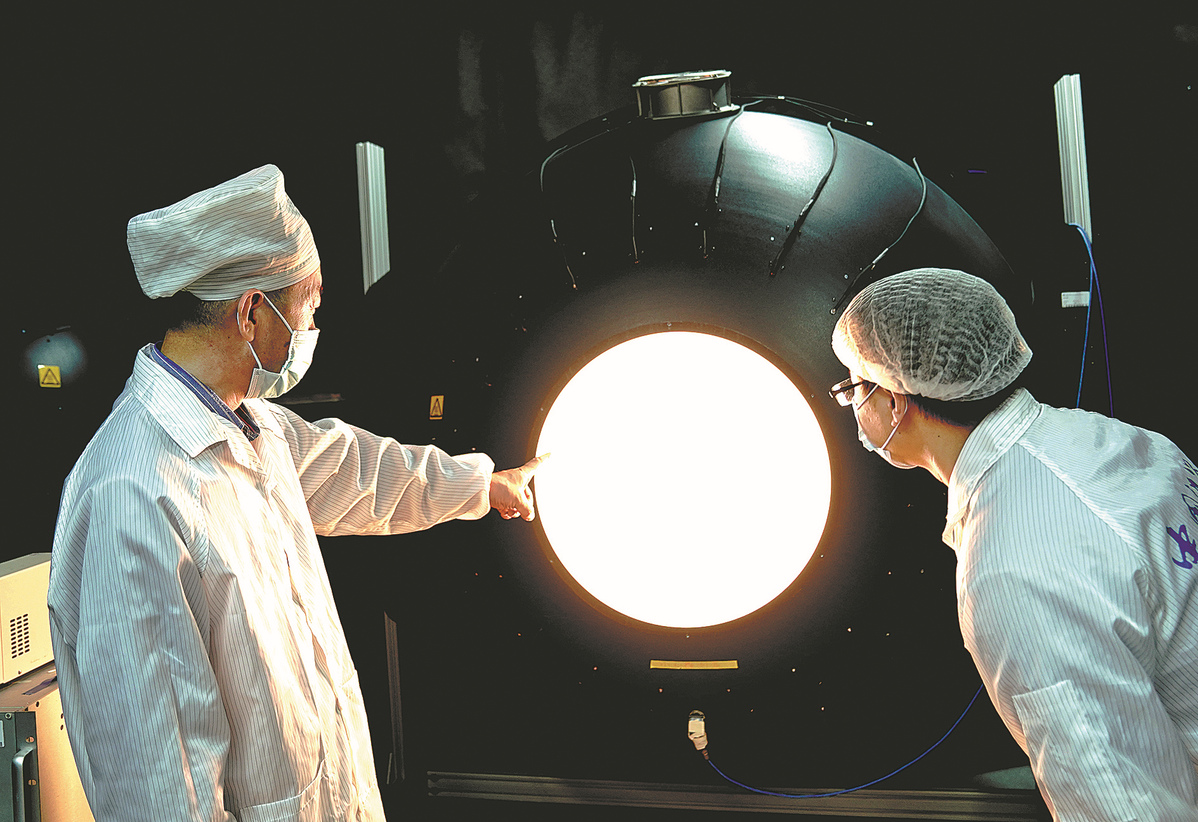 Scientists conduct a solar spectrum experiment at a Chinese Academy of Sciences' laboratory in Shanghai. ZHANG JIANSONG/XINHUA