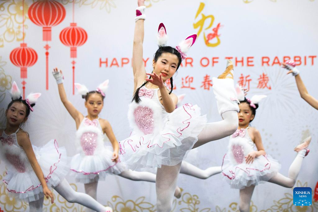 Children dance during an event to celebrate the Chinese New Year at the Chinese Cultural Center of Greater Toronto in Toronto, Canada, on Jan. 22, 2023. (Photo by Zou Zheng/Xinhua)