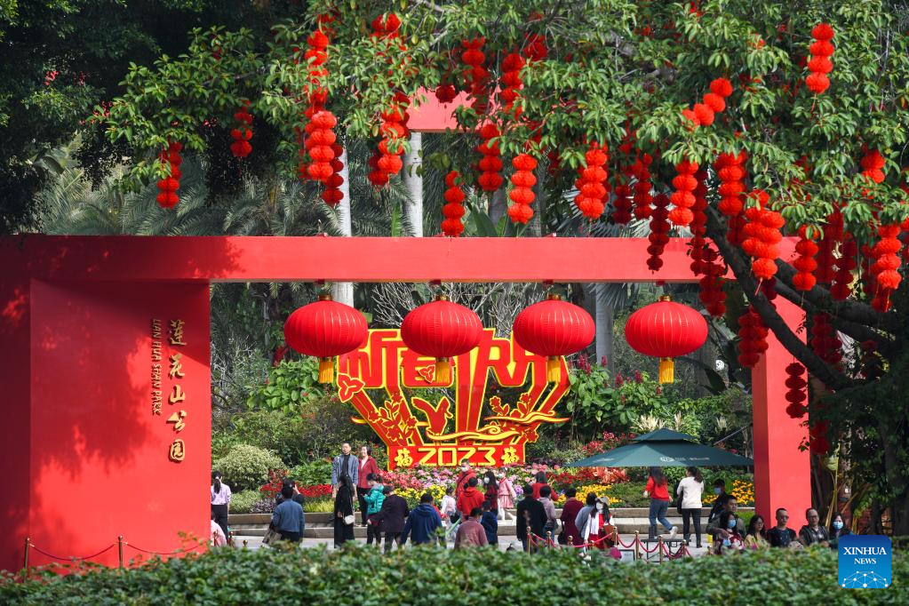 People visit the Lianhuashan Park in Shenzhen, south China's Guangdong Province, Jan. 22, 2023. The Chinese Lunar New Year, or Spring Festival, falls on Sunday. (Xinhua/Liang Xu)
