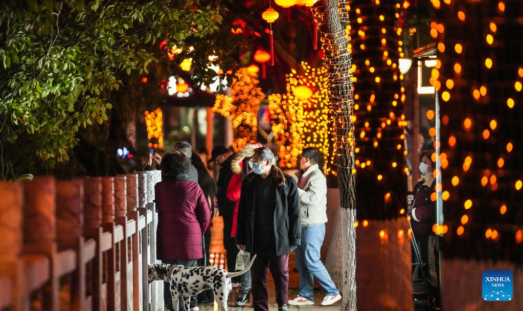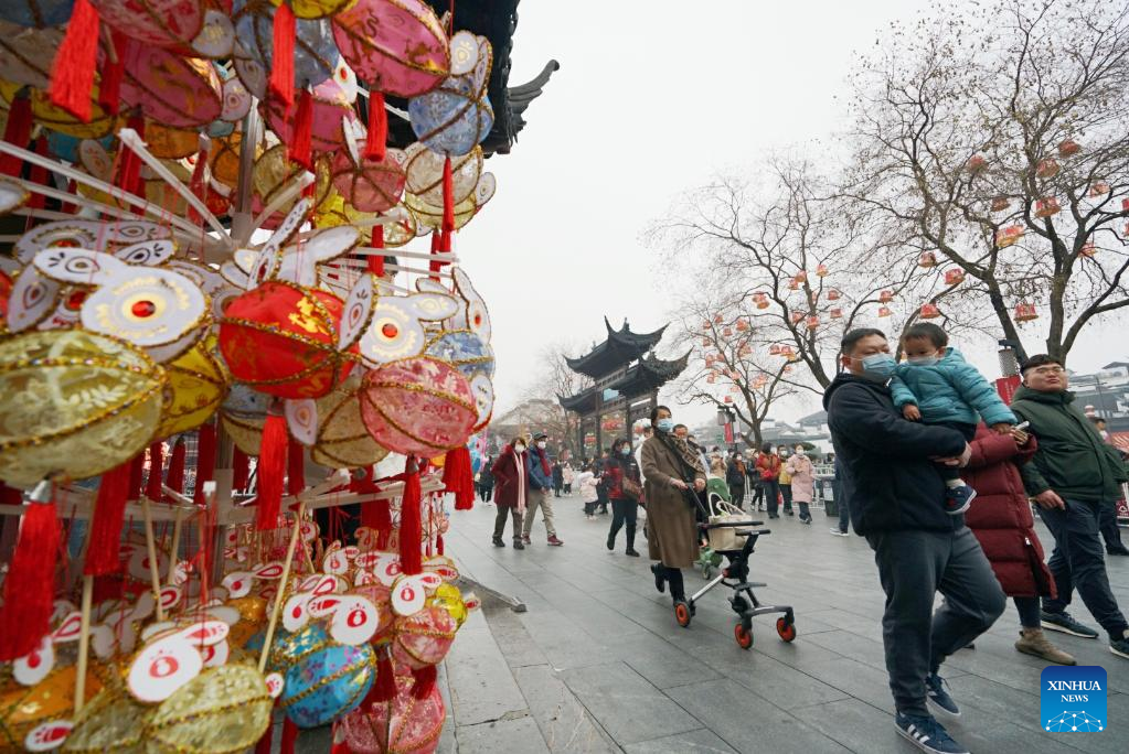 People have fun at the Confucius Temple tourist area in Nanjing, east China's Jiangsu Province, Jan. 22, 2023. The Chinese Lunar New Year, or Spring Festival, falls on Sunday. (Xinhua/Mao Jun)