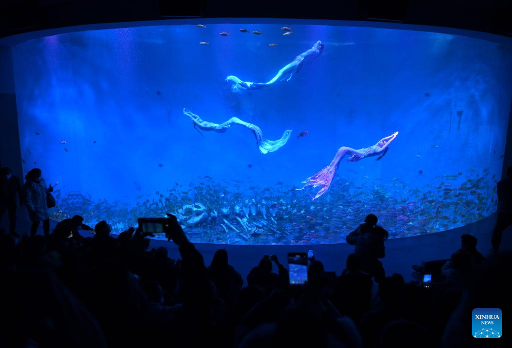 Tourists watch a mermaid show at an oceanarium in Hefei, east China's Anhui Province, Jan. 22, 2023. The Chinese Lunar New Year, or Spring Festival, falls on Sunday. (Xinhua/Zhou Mu)