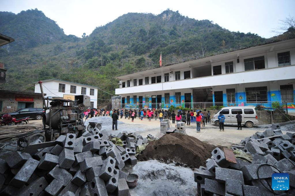 This photo shows Nongyong primary school under construction in Bansheng Town of Dahua Yao Autonomous County, south China's Guangxi Zhuang Autonomous Region, Dec. 19, 2013.