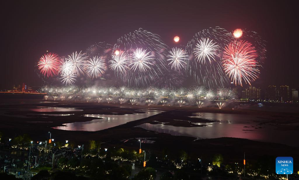Fireworks light up the sky over the city of Nanchang, east China's Jiangxi Province, Jan. 22, 2023. Sending traditional blessings to locals, a grand fireworks show was held on Sunday here to celebrate the Spring Festival. (Xinhua/Zhou Mi)