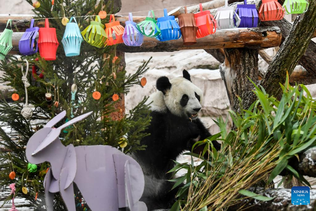 Moscow Zoo prepares food and festive decorations for giant pandas to celebrate Chinese Lunar New Year