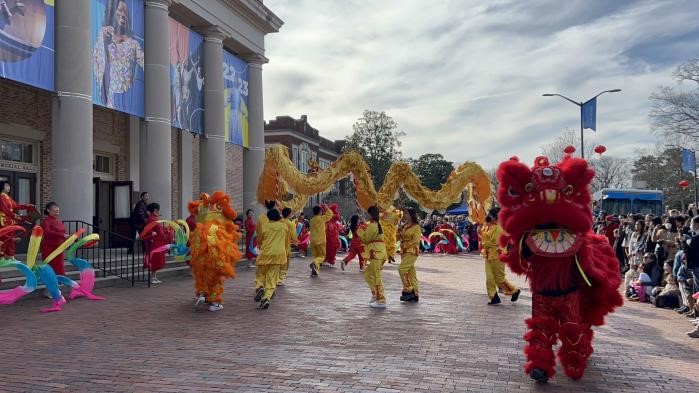 The performances from the Chinese School at Chapel Hill, the American School of Asian Culture Afterschool Program, and the Chapel Hill Chinese Folk Dance Club attract residents to watch and take photos.
