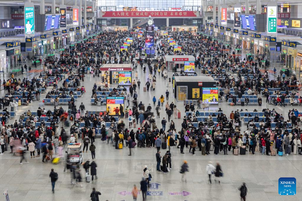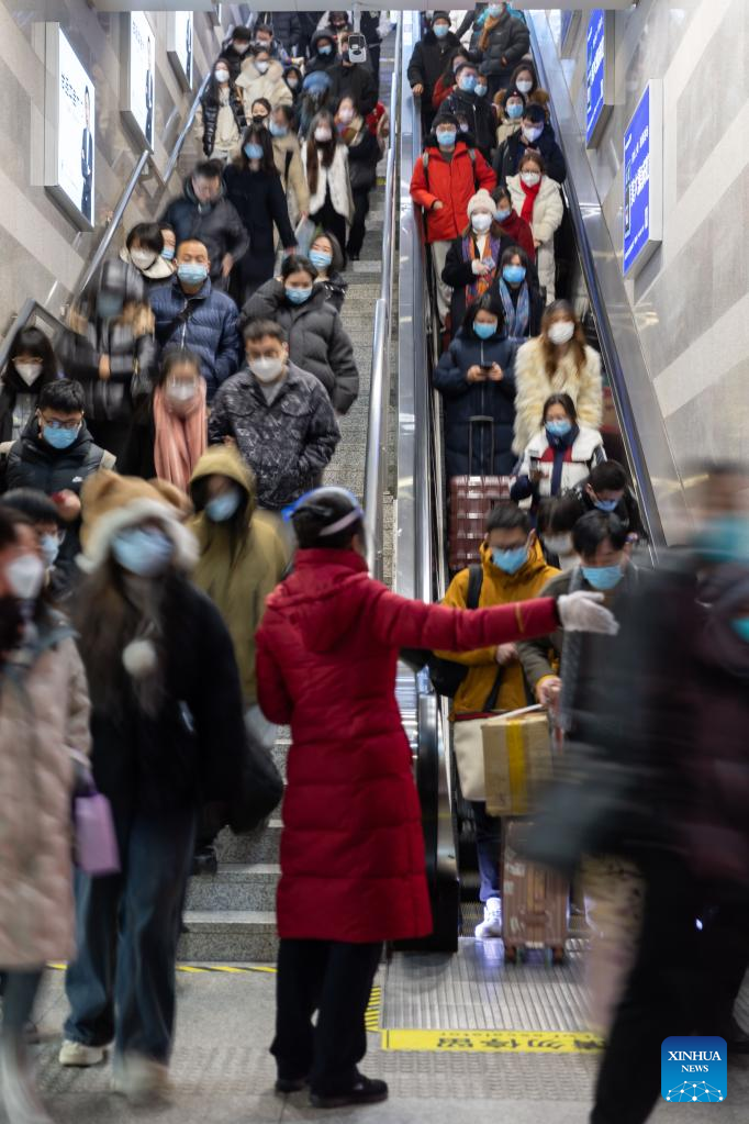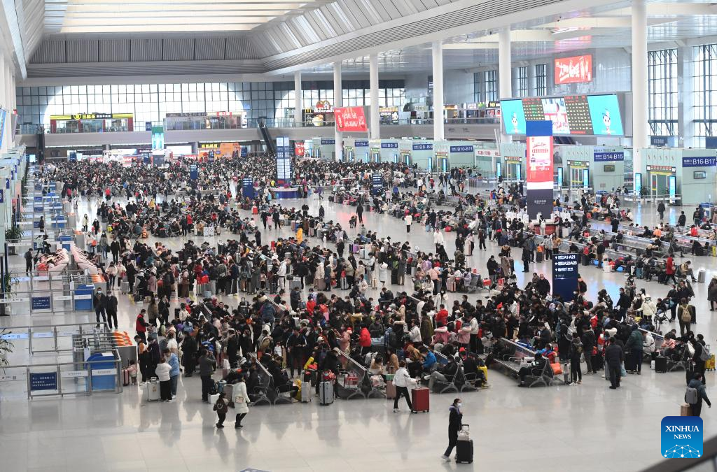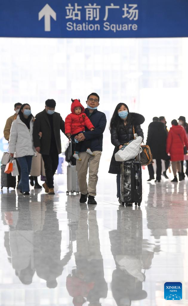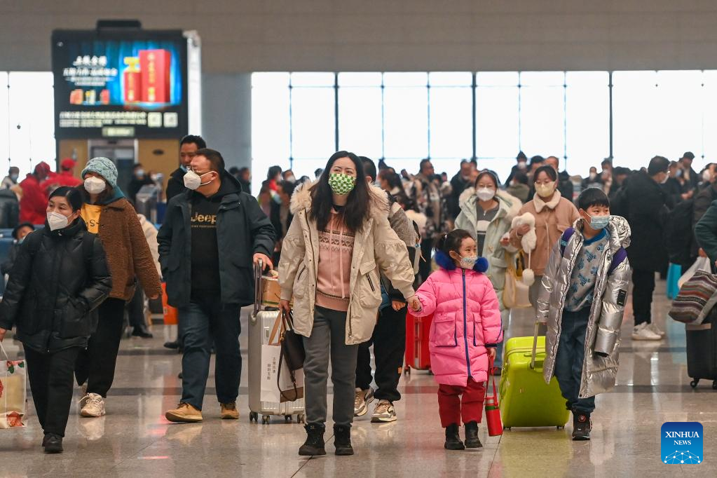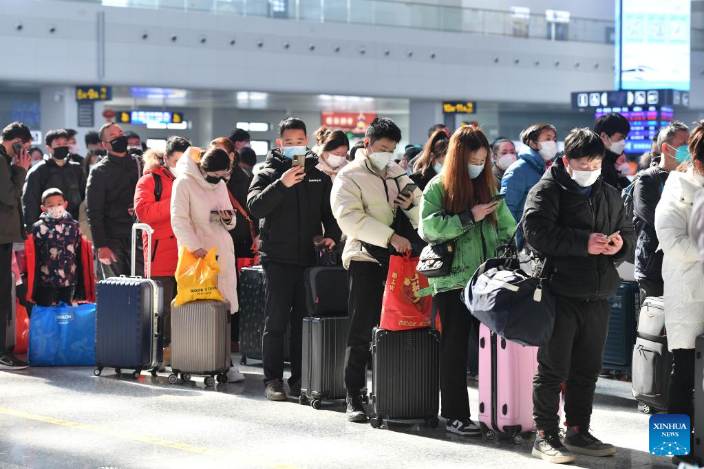 Passengers are pictured at Urumqi Railway Station in Urumqi, northwest China's Xinjiang Uygur Autonomous Region, Jan. 27, 2023. (Xinhua/Ding Lei)