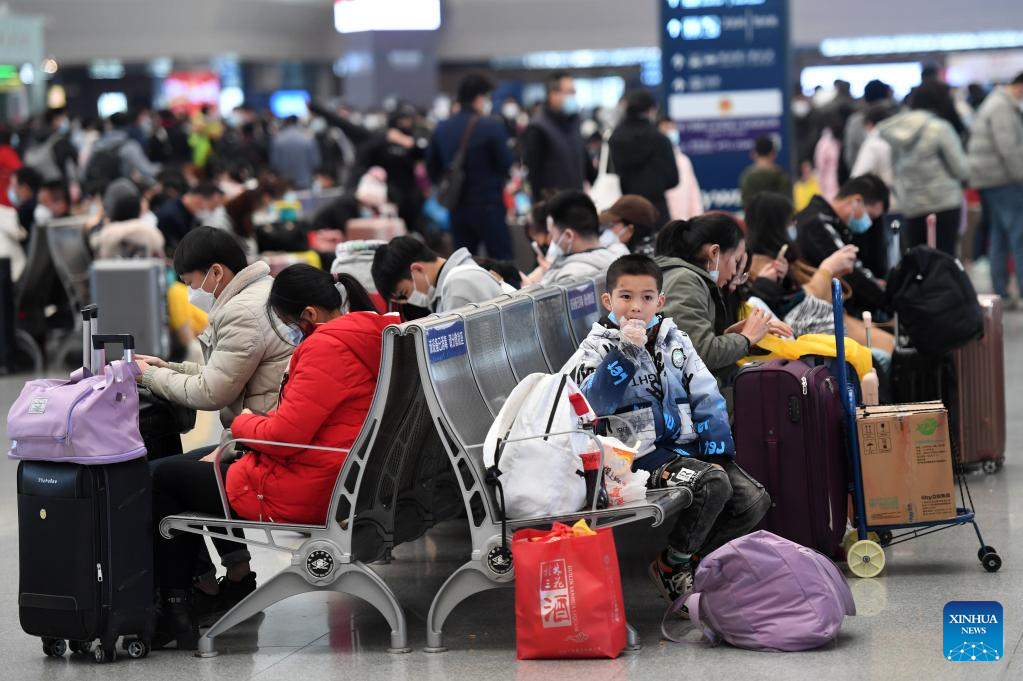 Passengers wait at Nanning East Railway Station in Nanning, south China's Guangxi Zhuang Autonomous Region, Jan. 27, 2023. (Xinhua/Lu Boan)