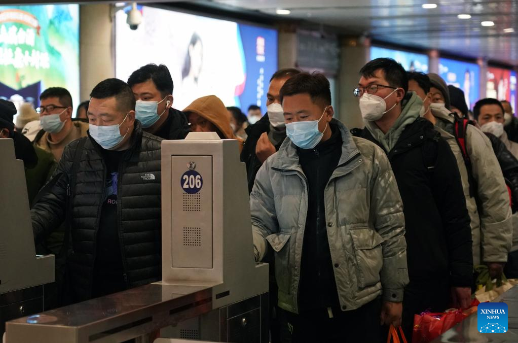 Passengers exit through ticket barriers at Beijing West Railway Station in Beijing, capital of China, Jan. 27, 2023. (Xinhua/Ren Chao)