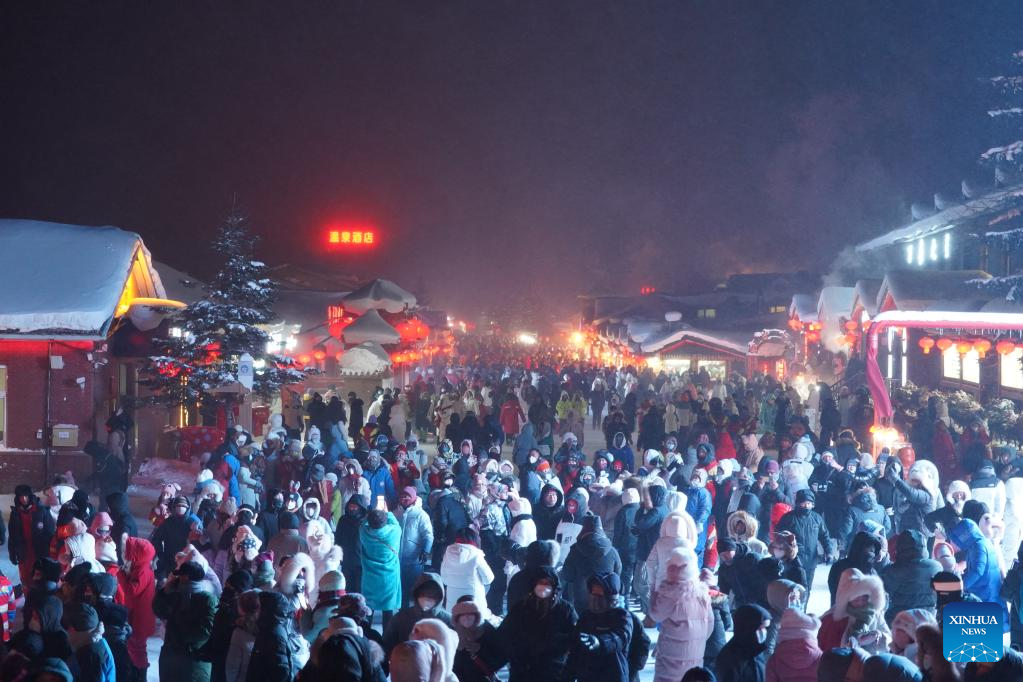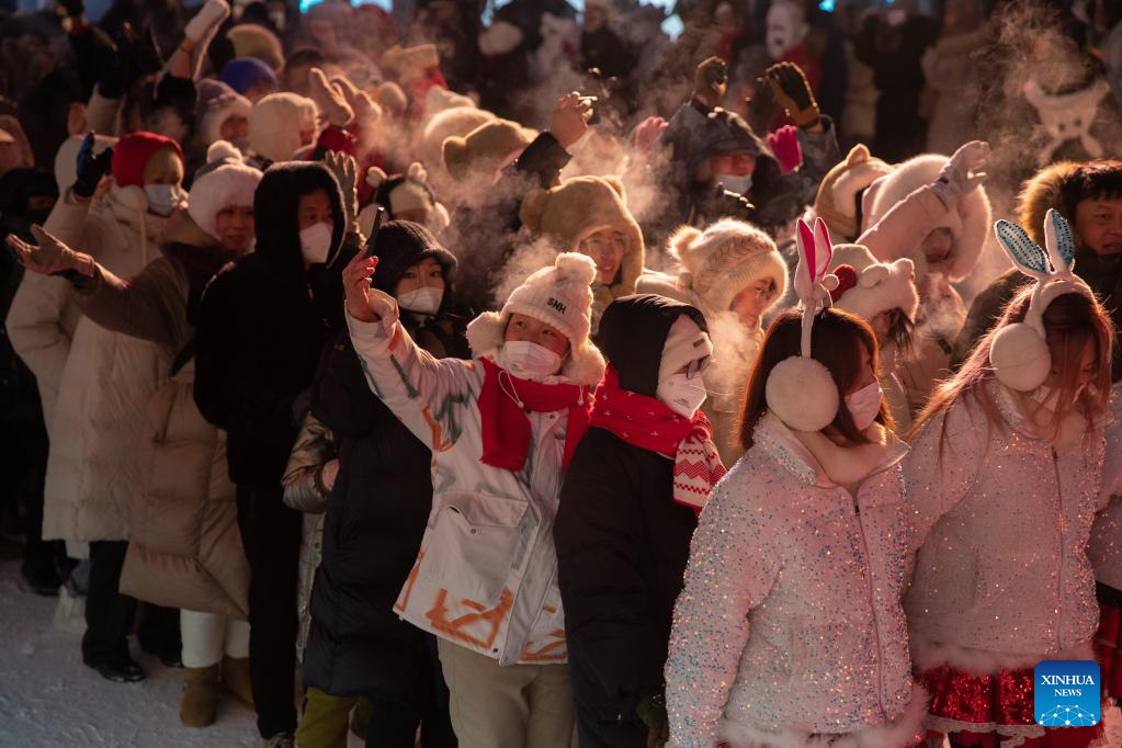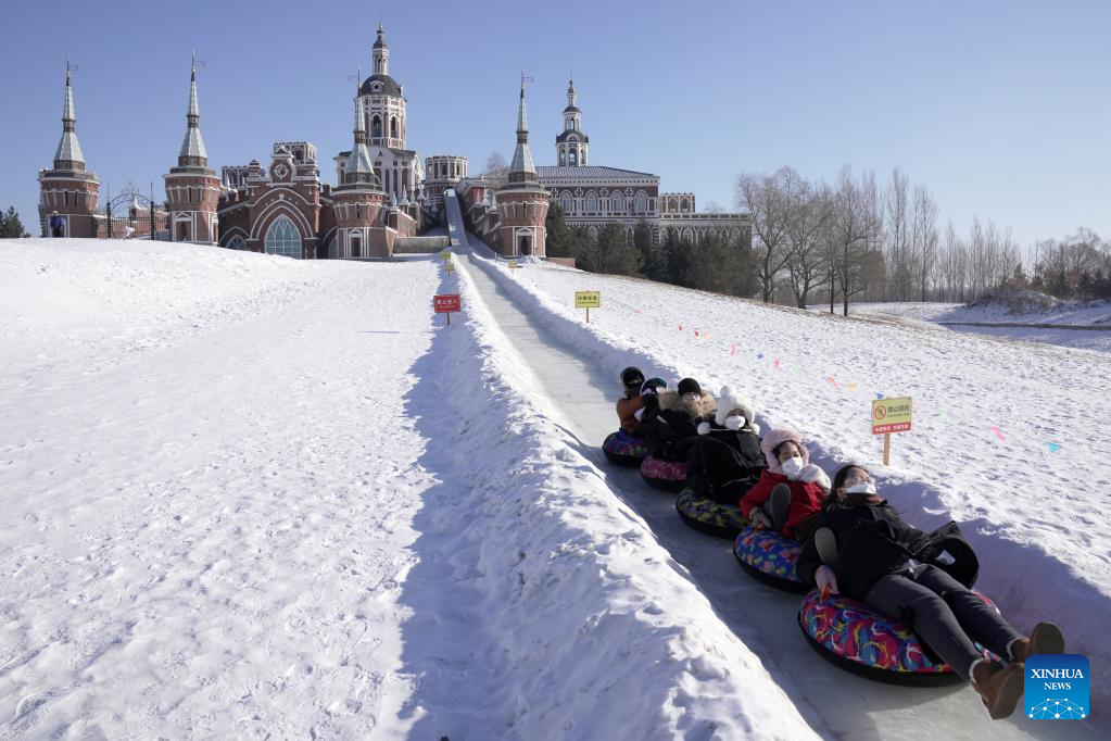 People enjoy themselves at the Volga Manor in Harbin, northeast China's Heilongjiang Province, Jan. 26. 2023. Heilongjiang has attracted legions of tourists during the Spring Festival holiday. (Xinhua/Wang Jianwei)